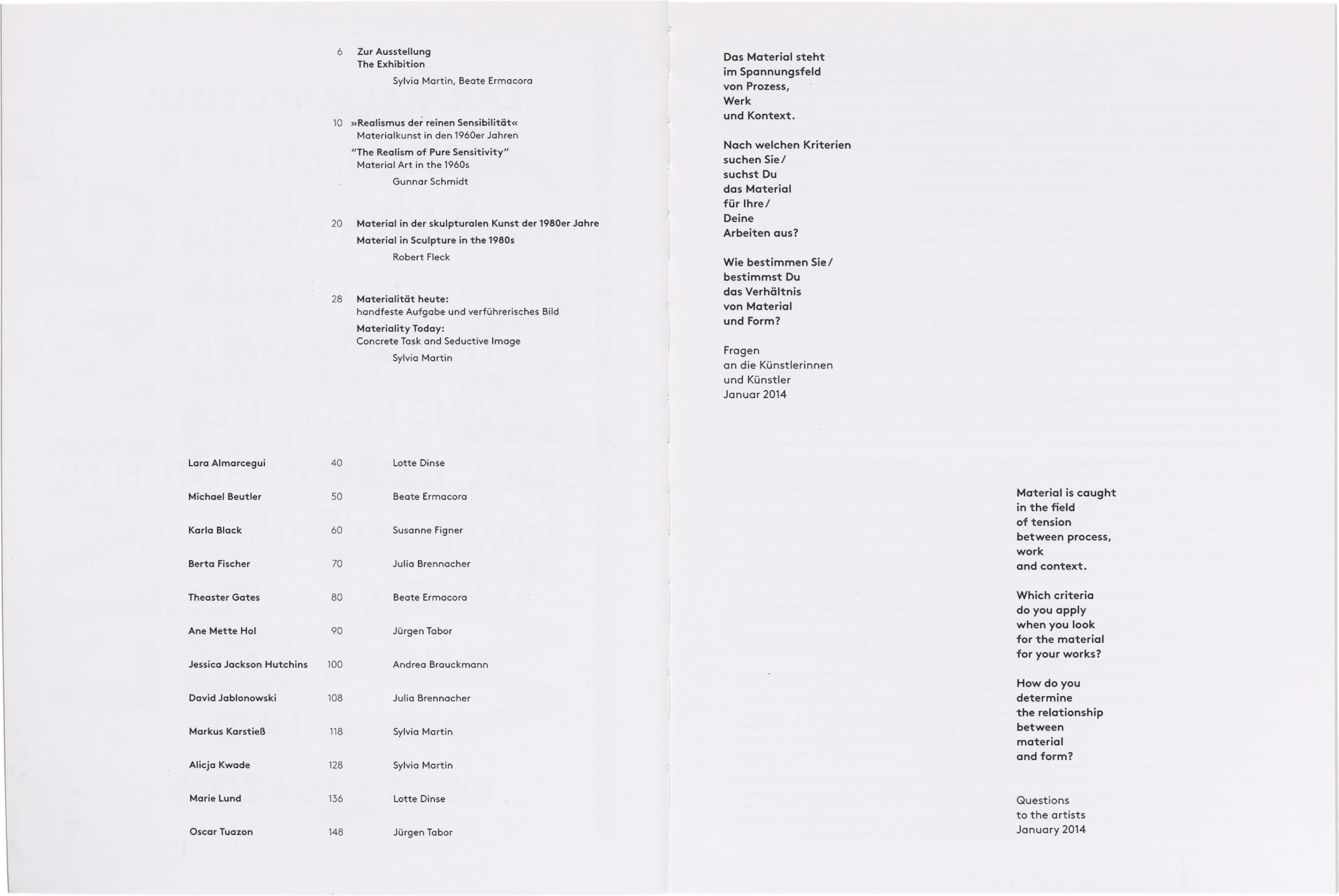artists: Lara Alamarcegui, Michael Beutler, Karla Black, Berta Fischer, Theaster Gates, Ane Mette Hol, Jessica Jackson Hutchins, David Jablonowski, Markus Kastieß, Alicja Kwade, Marie Lund, Oscar Tuazon